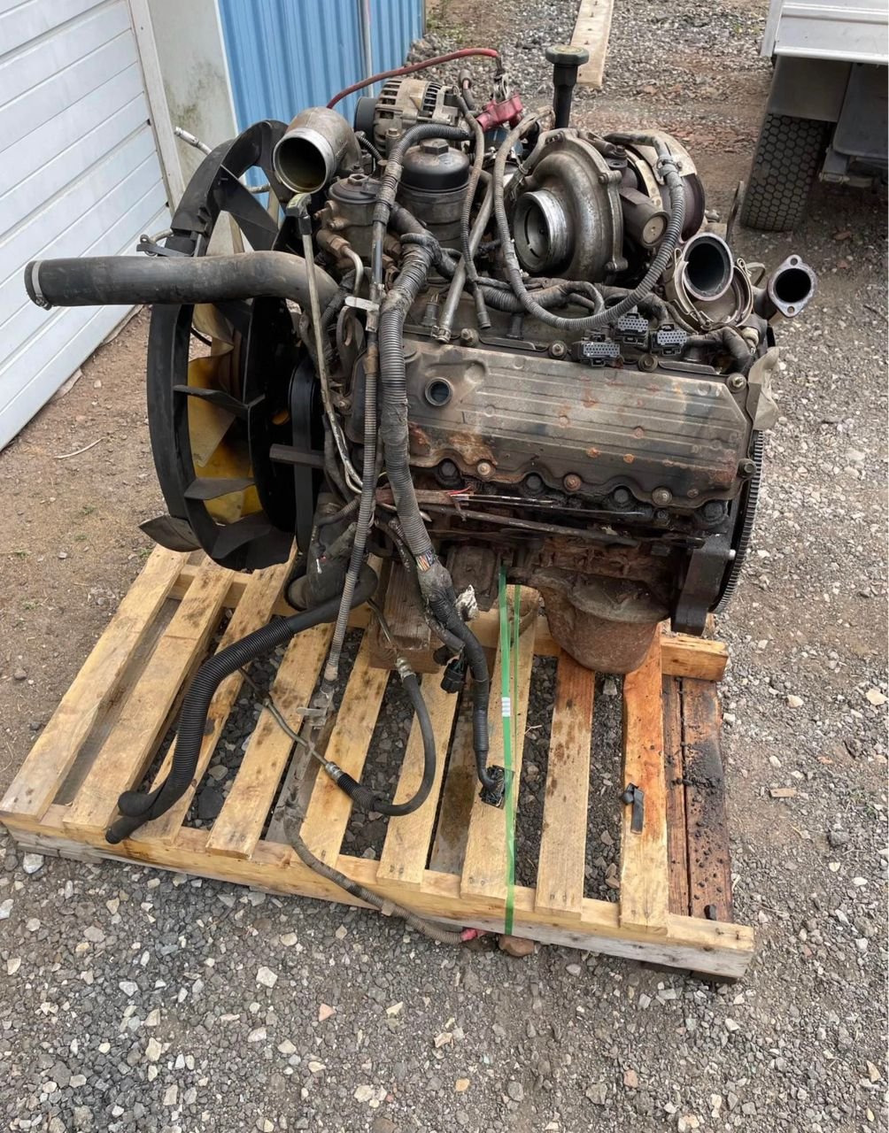 Truck had 153,500 miles when pulled. Not studded. Motor includes turbo or injectors which would make this perfect for a drop in motor.